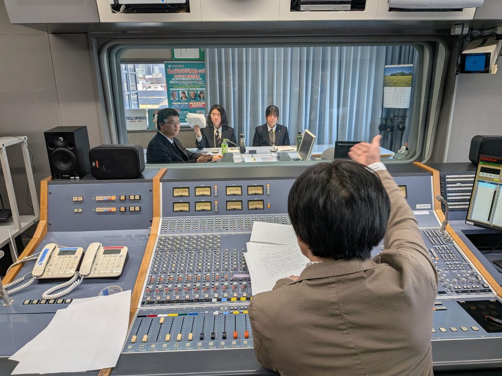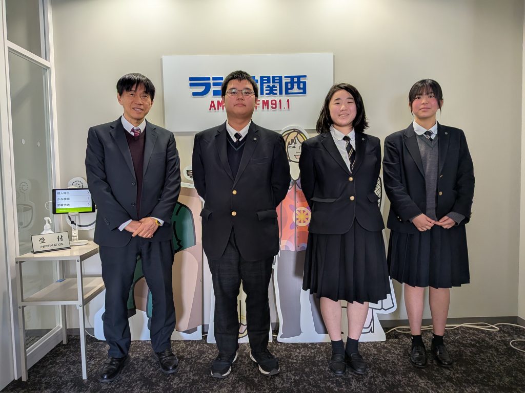 放送部員3名が、ラジオ関西「ひょうごラジオカレッジ」の収録に出演させていただきました。かなり緊張して、失敗もありましたが、優しく丁寧に教えてくださり、無事に収録を終えることができました。スタッフの皆様、お世話になり、ありがとうございました。なお、この番組は3月28日(土)午前7時よりオンエアーされます。ぜひお聴きください。
